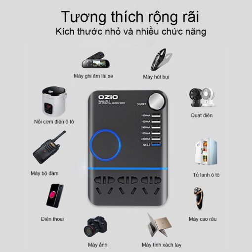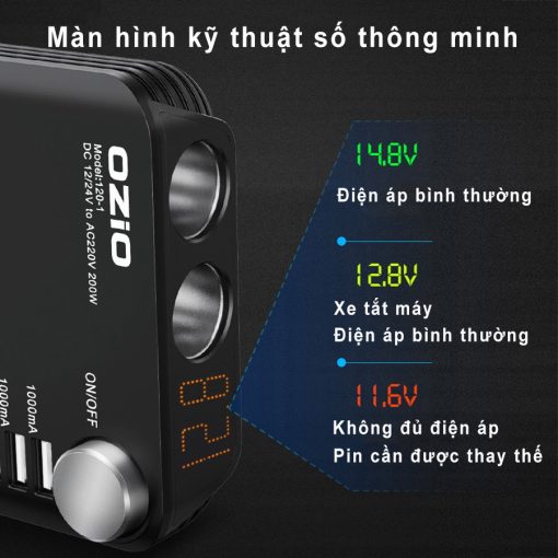 Bộ chuyển đổi nguồn ô tô 12/24V sang 220V Ozio là thiết bị không thể thiếu cho ô tô. Với khả năng chuyển đổi điện áp mạnh mẽ và thiết kế nhỏ gọn, giúp bạn sử dụng các thiết bị điện 220V ngay trên chiếc xế yêu của mình.