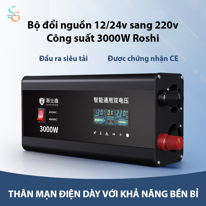 Bộ đổi nguồn 12/24V sang 220V công suất cao 3000W Roshi