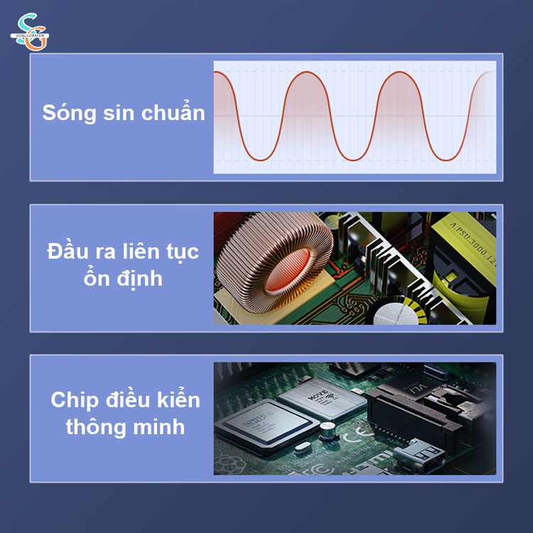 - Công nghệ sóng sin chuẩn: Đảm bảo điện áp đầu ra ổn định và an toàn cho các thiết bị điện tử.