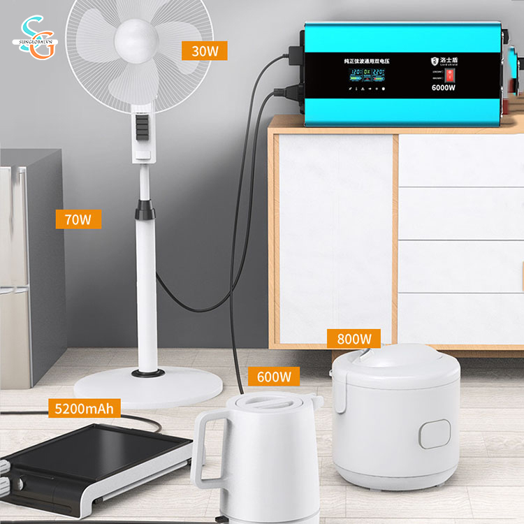 - Điện áp ra: 220V Sóng sin chuẩn