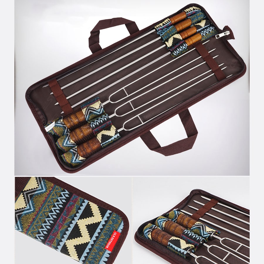 Bộ xiên thịt nướng inox cao cấp 7 món giúp bạn trong việc chế biến món ăn thơm ngon hơn trong những chuyến du lịch dã ngoại