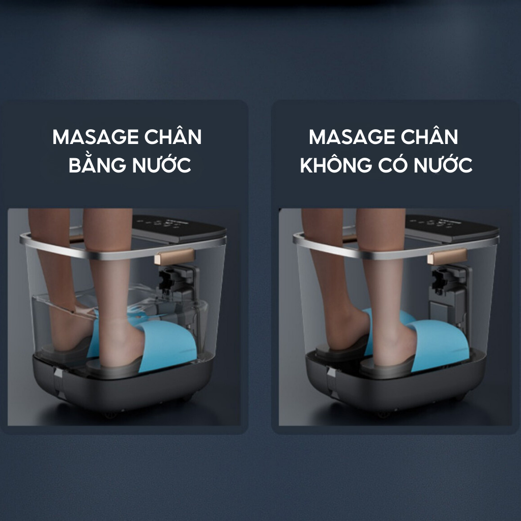 - Thiết kế lòng chậu sâu không chỉ mátxa bàn chân mà còn xông hơi lên tới bắp chân