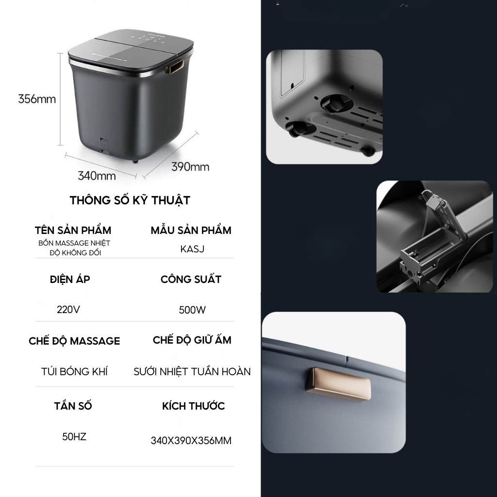 Trải nghiệm thư giãn với Chậu Ngâm Chân Massage Kasj - công nghệ massage hiện đại, sưởi ấm nhanh. Tận hưởng massage thủy nhiệt tại nhà dễ dàng!