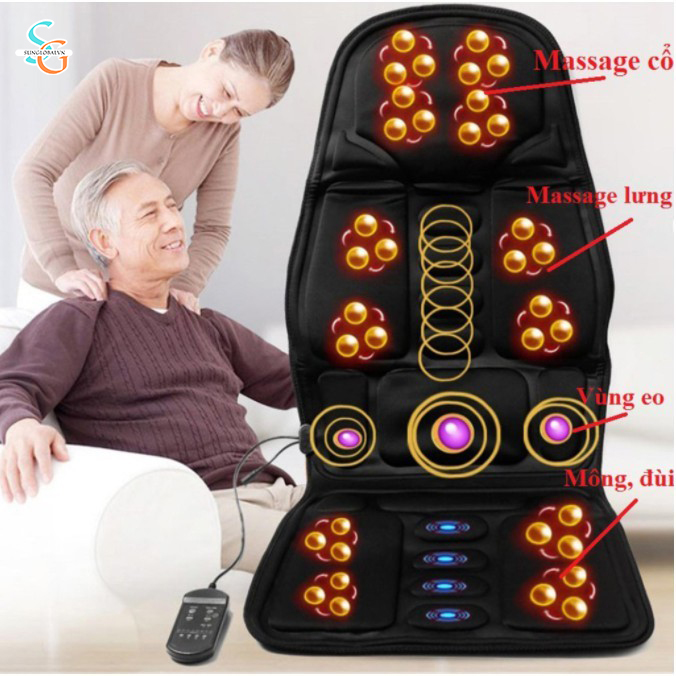 - 5 Vùng Mát Xa Đa Chức Năng: Đệm được trang bị 5 vùng mát xa riêng biệt, bao gồm cổ, vai, lưng, hông và đùi, giúp giảm căng thẳng và mệt mỏi hiệu quả. Mỗi vùng mát xa có thể điều chỉnh độc lập, mang lại trải nghiệm cá nhân hóa tối đa.