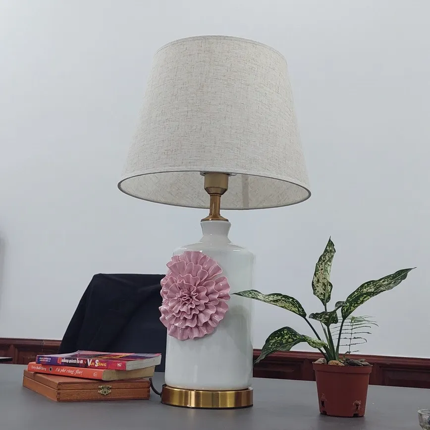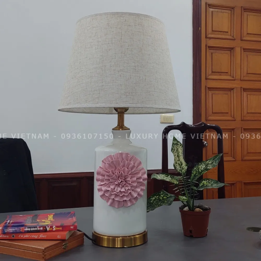 Đèn để bàn, đèn phòng ngủ là dòng Đèn Chủ Tịch của LUXURY HOME VN thân gốm sứ đắp hoa Hồng nổi, chân đồng sang trọng có thể di chuyển tiện lợi, phù hợp trang trí và làm đẹp mọi không gian như phòng làm việc, phòng khách, phòng ngủ, thư phòng với nhiều màu tùy chọn, hàng cao cấp loại 1.