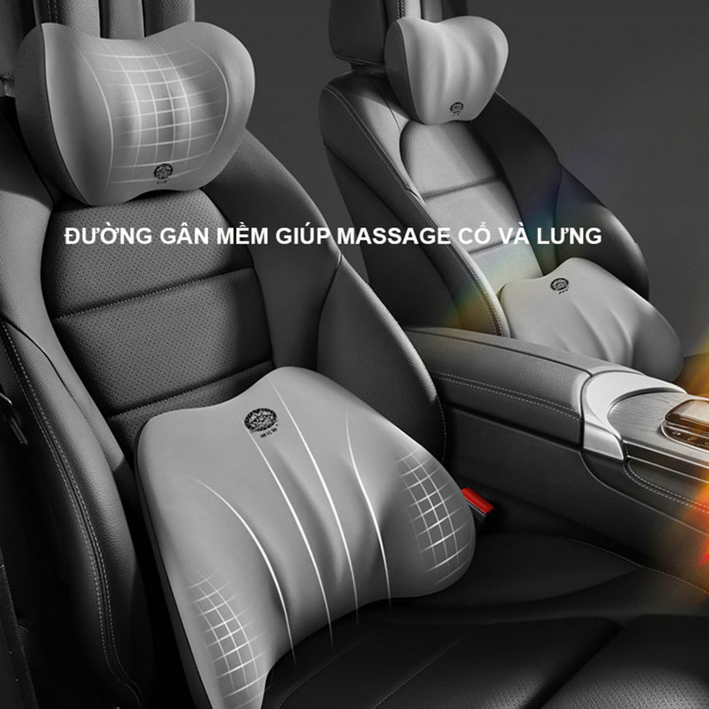 - Thiết kế ôm trọn, có gân mềm massage và bảo vệ tuyệt đối ĐẦU, CỔ và LƯNG.