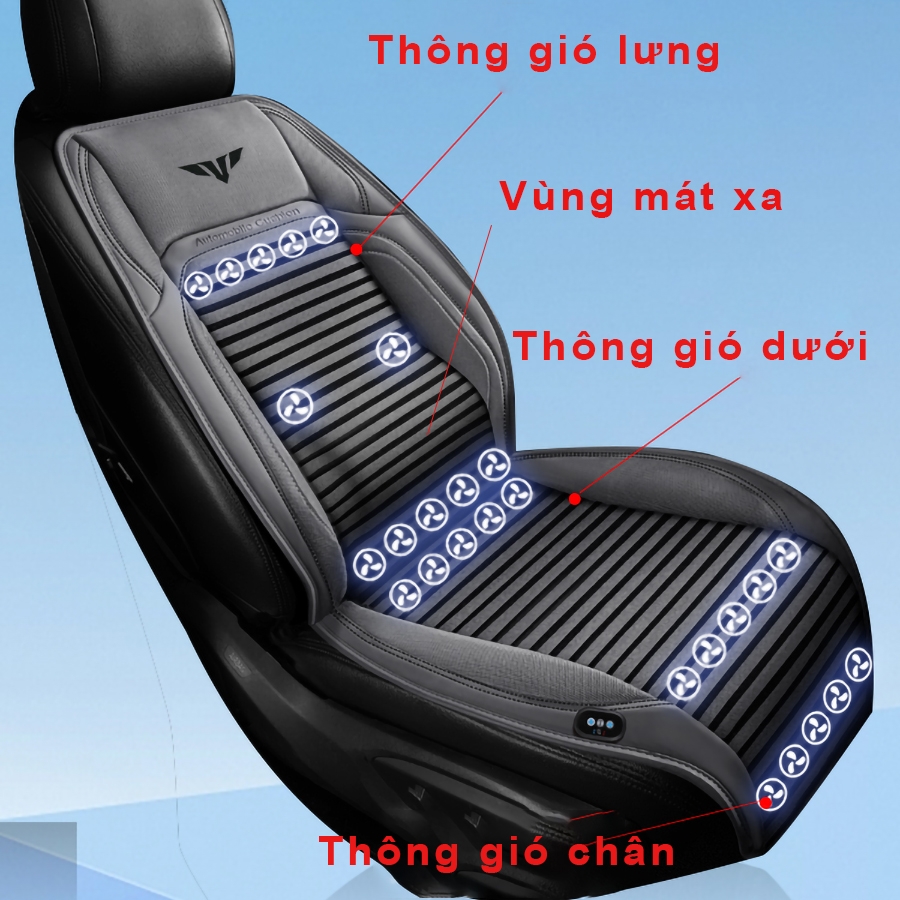 Lót ghế ô tô có quạt lám mát TỰ ĐỘNG NGẮT 16-20-25 quạt + mát xa, đệm lót ghế có đệm hơi tựa lưng