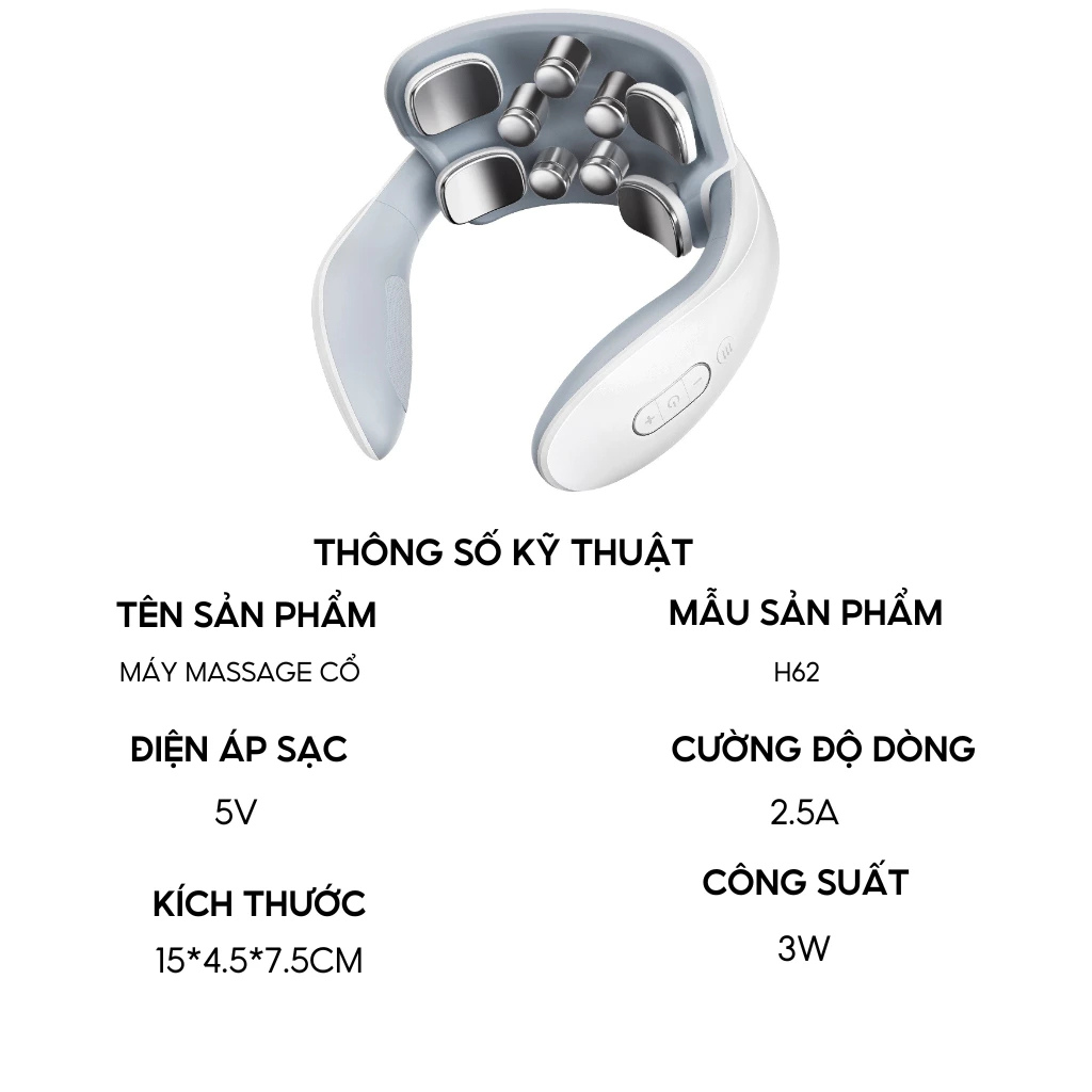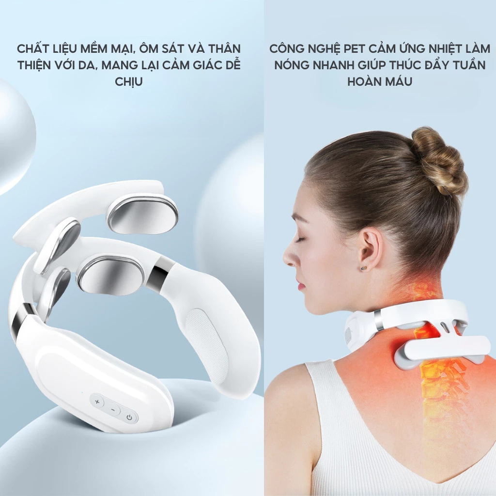 Tính Năng Nổi Bật: Kích Thích Sản Sinh Hormone Serotonin: Hỗ trợ điều chỉnh tâm trạng, cải thiện giấc ngủ, khả năng học tập và trí nhớ, mang lại giấc ngủ tự nhiên cho người mất ngủ. Ánh Sáng Đỏ 630nm: Tác động sâu vào các tế bào, loại bỏ cơn đau và co cứng vùng cổ vai gáy chỉ sau 15 phút. Công Nghệ Mô Phỏng 5 Ngón Tay: Massage sâu vào huyệt đạo, mang lại cảm giác như được chuyên gia massage thực thụ. Sóng TENS: Tác động vào các nhóm cơ sâu, cải thiện cơn đau nhanh chóng, mang lại cảm giác thoải mái. Ánh Sáng Đỏ Kết Hợp Nhiệt Độ 42°C: Tăng cường hiệu quả trị liệu gấp 5 lần, loại bỏ nhanh chóng cơn đau.