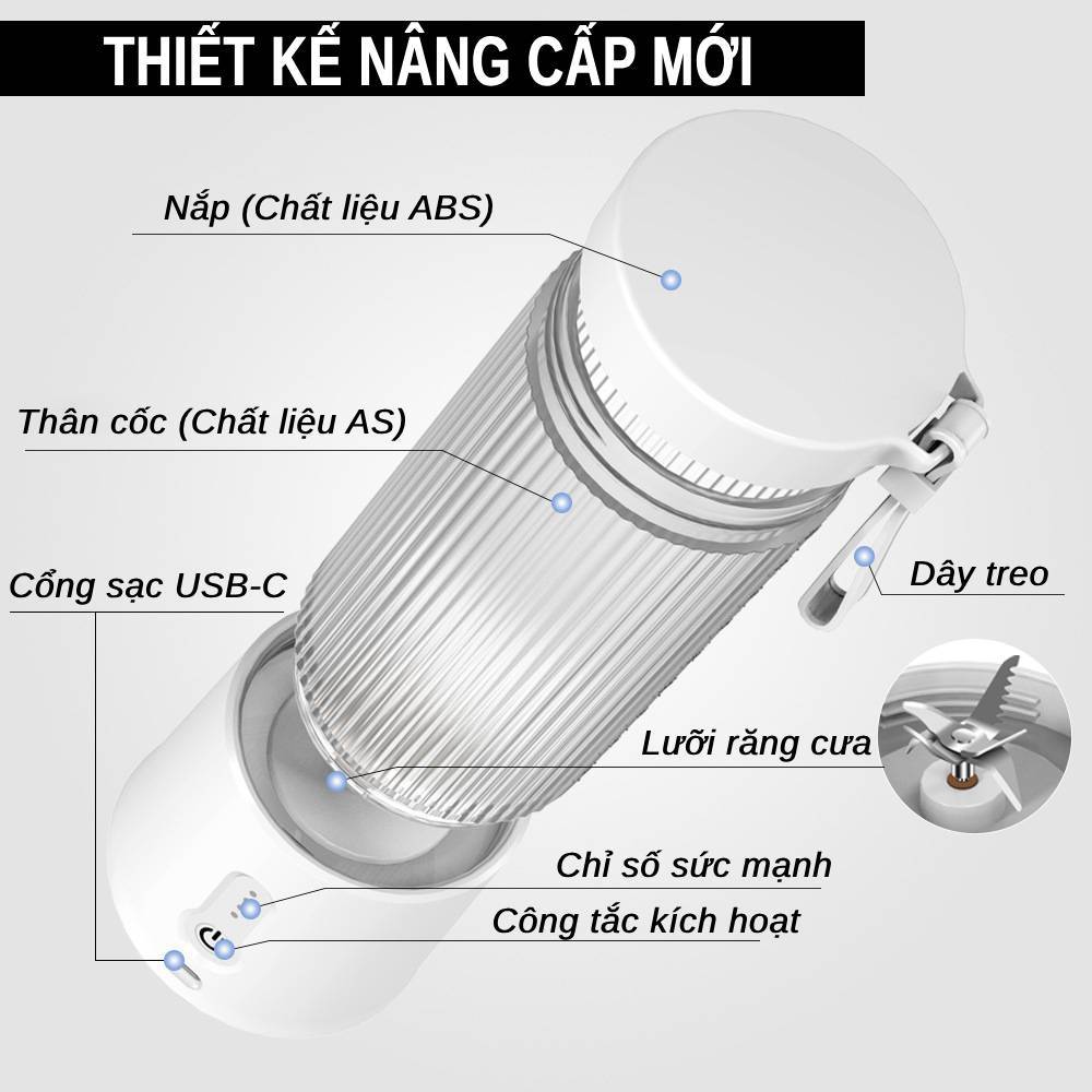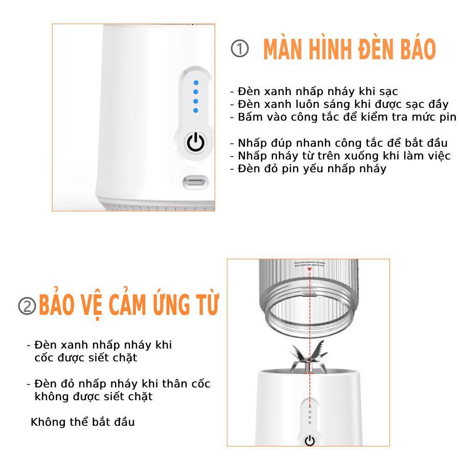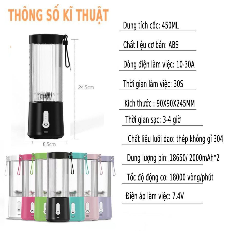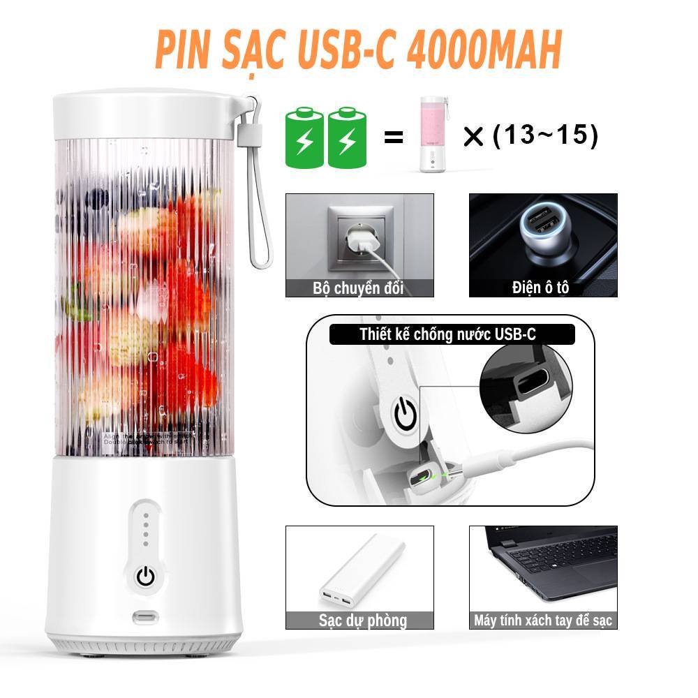 Máy xay sinh tố cầm tay sạc pin tiện lợi 3 trong 1 máy xay mini đa năng trái cây