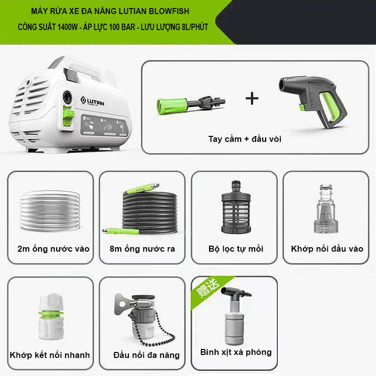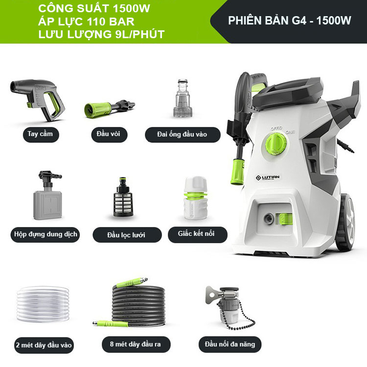 Máy rửa xe cao áp 1500W LUTIAN là giải pháp hoàn hảo cho việc làm sạch xe ô tô, sân vườn và nhà cửa. Công suất mạnh mẽ, thiết kế nhỏ gọn và tính năng thông minh.