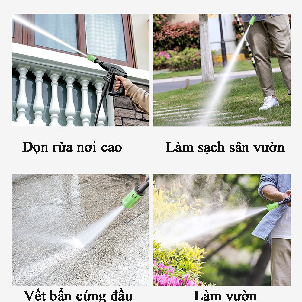 - Xịt rửa khoẻ, áp lực cao, tự ngắt khi nhả cò súng.