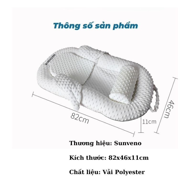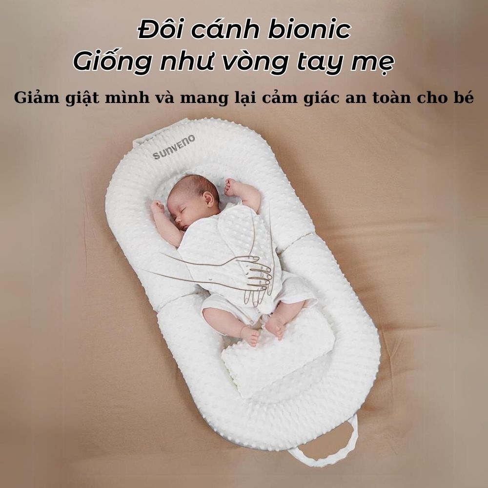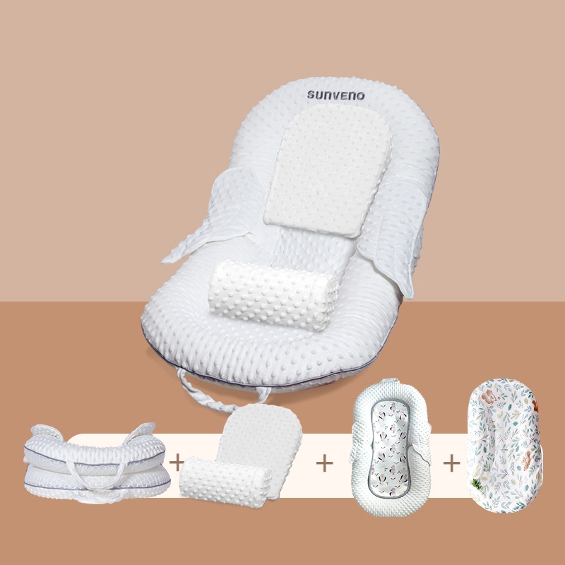 Bộ đệm gối chống trào ngược cho bé Sunveno , nôi ngủ chung giường chống trào ngược