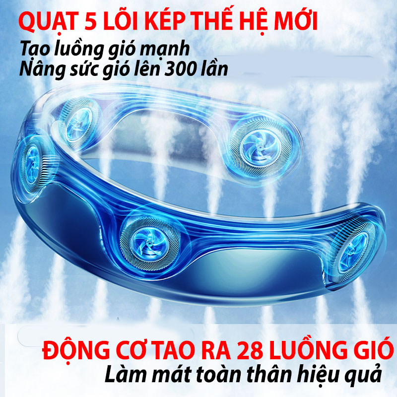 - Mặc dù có tới 5 quạt gió nhưng quạt đeo cổ hãng này đã được cải tiến về độ ồn không gây khó chịu cho người sử dụng và xung quanh