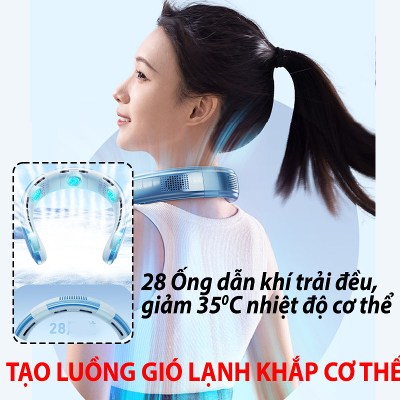 - Quạt đeo cổ làm mát cơ thể vùng cổ, quạt đeo cổ mini thích hợp với những người làm việc văn phòng hoặc người chơi thể thao.