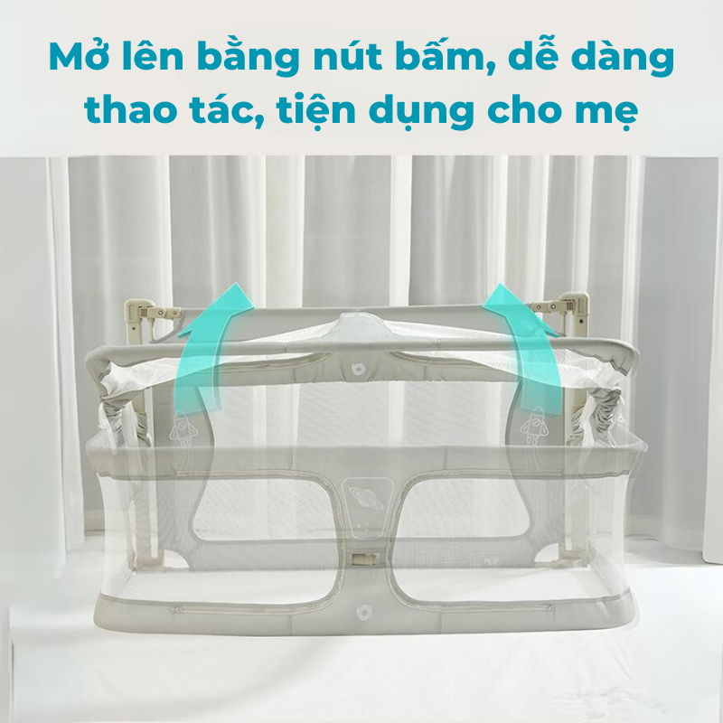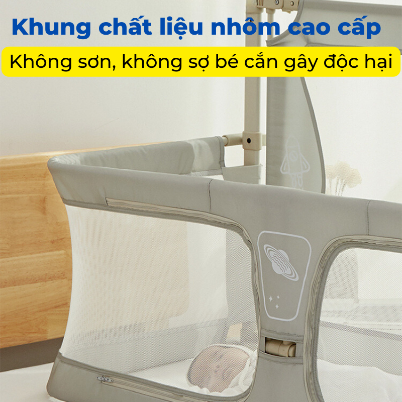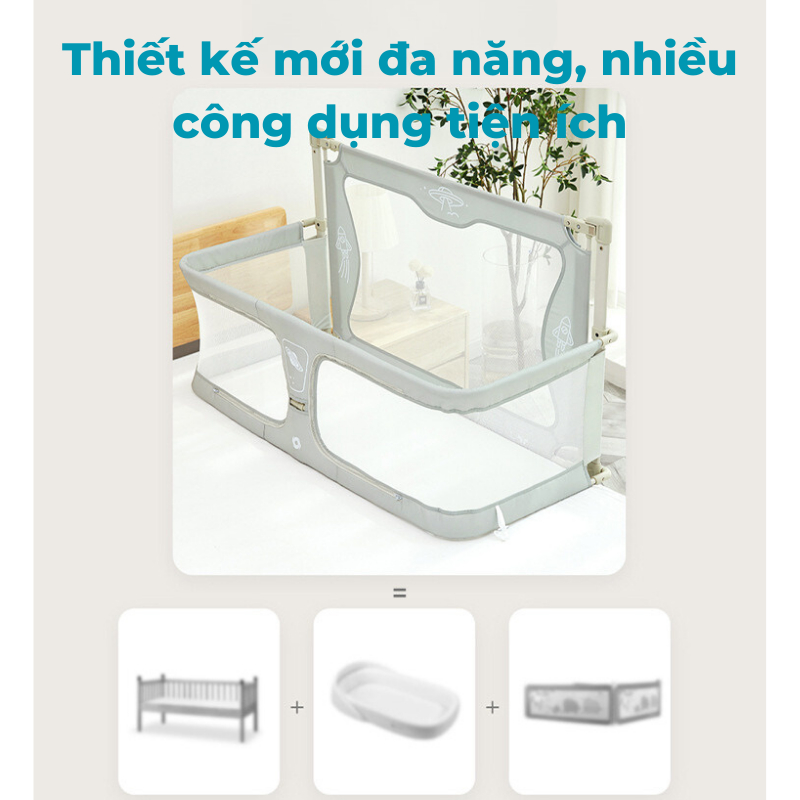 Nôi chung giường đa năng dành cho trẻ từ 0-3 tuổi, kết hợp linh hoạt giữa nôi sơ sinh và quây cũi. Đa chức năng, thiết kế tiện lợi, chất liệu an toàn, thân thiện với môi trường.