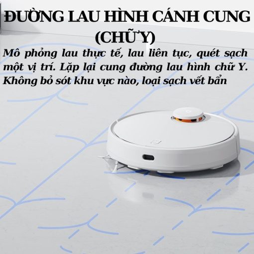 Robot Mijia 3C có thể lau và hút sạch mà không bỏ sót vết bẩn bởi đường lau hình cánh cung, chữ Y mô phỏng như người thật